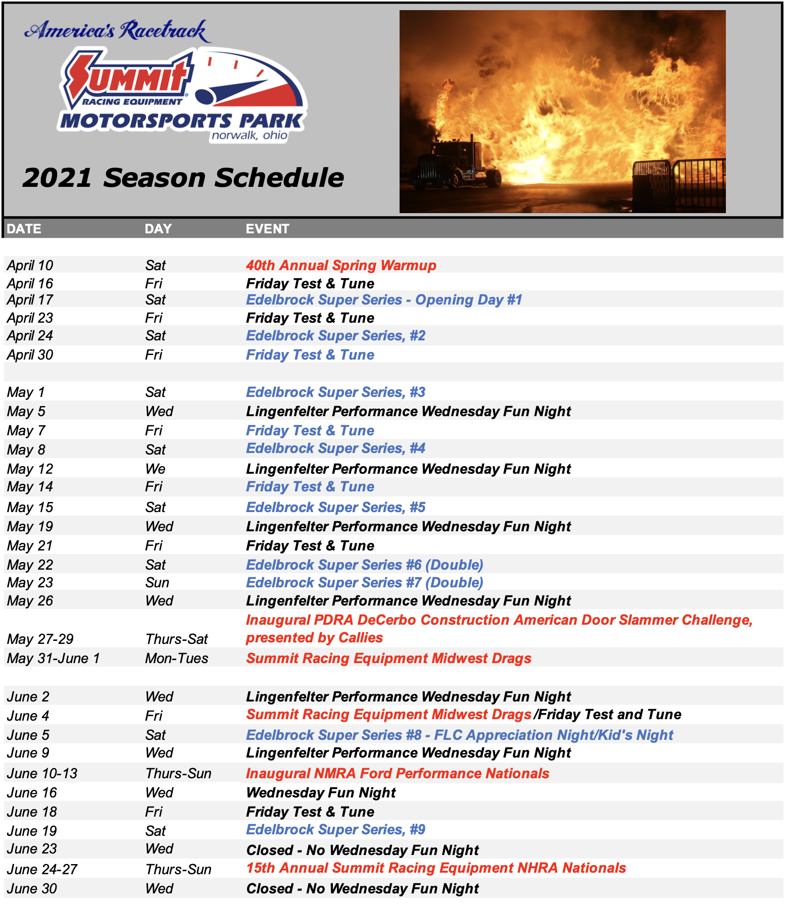 Summit Motorsports Park 2024 Schedule. Summit motorsports park will stage plenty of showstopping entertainment and surprises in 2024! Tickets go on sale to the public on monday, nov.